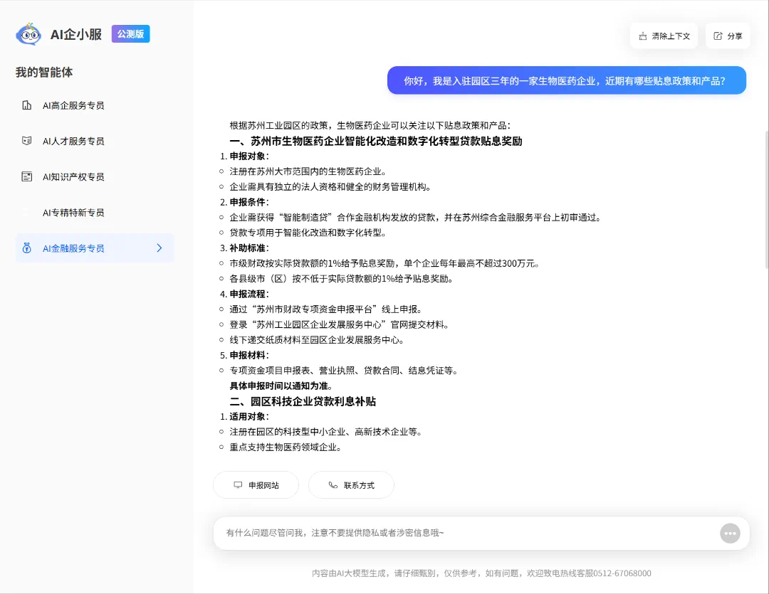 On the other hand, SIP offers precise services to help SMEs grow into enterprises capable of using special and sophisticated technologies to produce novel and unique products, which are also known as SRDI (specialized, refined, differential and innovative) enterprises. It has created a multi-level cultivation system which has cultivated 661 enterprises of such kind recognized provincially, and holds events frequently to explain related policies to SMEs and give them a helping hand in financing, technological innovation, talent training and other aspects. Last month, SIP launched an online platform with integrated information for SRDI enterprises and those striving to join this cohort.