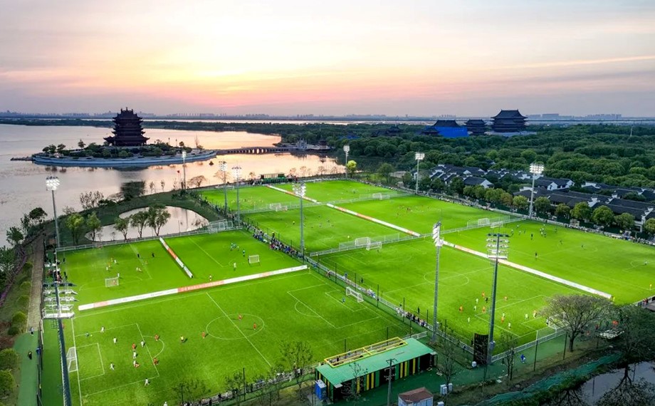 Yangchenghu Peninsula Football Park has five waterside natural grass football fields which meet the highest standards of the country and are more comfortable and eco-friendly and safer than artificial grass pitches.