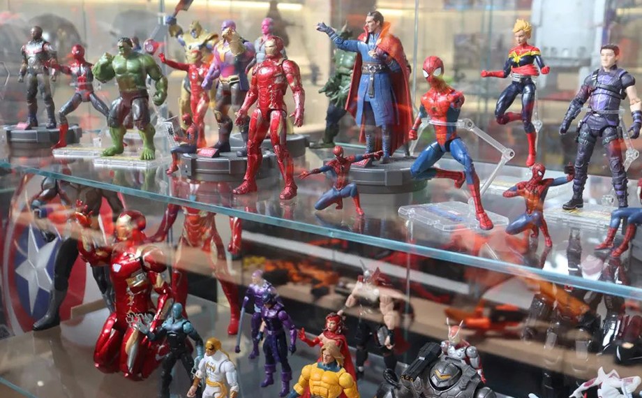 Among the displays are also diverse action figures and collectibles of Marvel and other comic franchises, and also many rare retired LEGO sets.