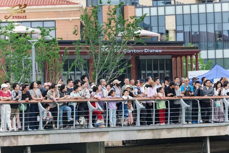The event began with vibrant lion and dragon dances. Spectators flocked to the lakeside early, securing prime viewing spots along Jinji Lake.