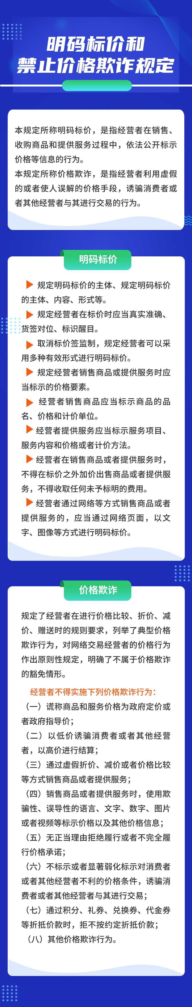 在此,園區市場監督管理局請各經營者再次一圖速覽《明碼標價和禁止價格欺詐規定》重點內容。