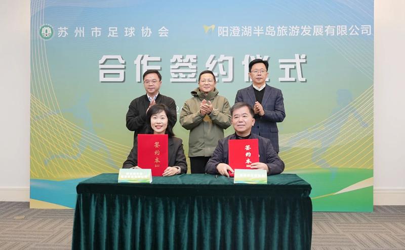 1月22日,蘇州市足球協會與蘇州陽澄湖半島旅游發展有限公司合作簽約儀式在蘇州陽澄湖半島旅游度假區舉行,蘇州市足協活動中心順利落戶半島。蘇州市體育局、蘇州工業園區宣傳和統戰部、度假區黨工委管委會、蘇州市足協、半島公司等單位和企業相關負責人參加活動。