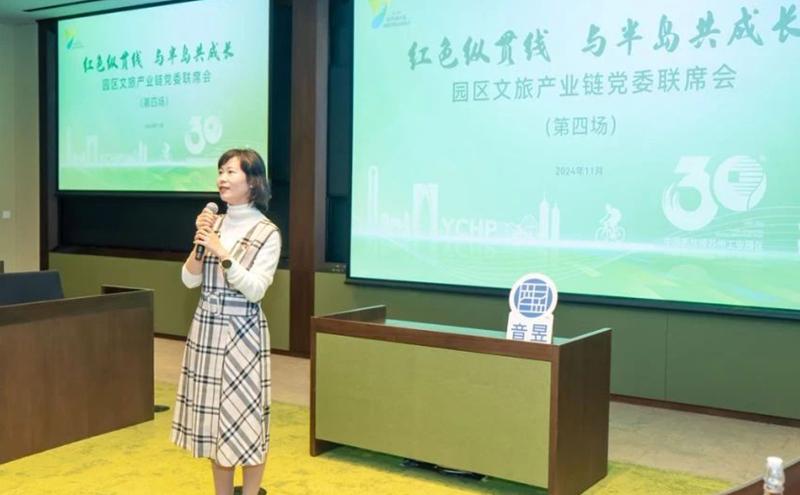 2023年底,園區工委組織部成立了文旅產業鏈黨委,積極探索“1+1+N鏈式黨建”工作格局,通過“鏈產業”“鏈平臺”“鏈資源”,以點串線、串珠成鏈、聚鏈成群,推進鏈上文旅企業“聚鏈”“壯鏈”“優鏈”,提升集聚力和競爭力,不斷推動文旅產業“鏈”上開花。