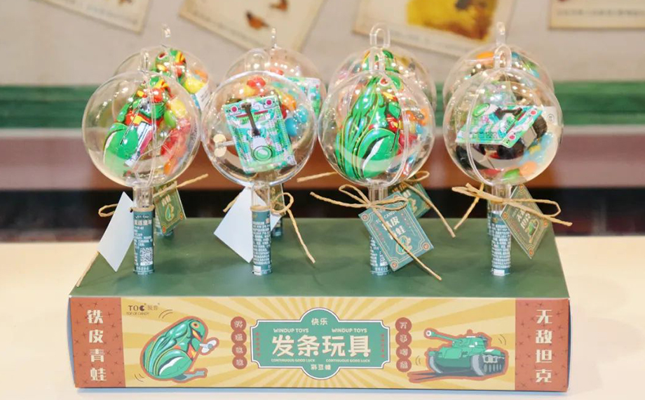 除了館藏上萬(wàn)件玩具之外,蘇玩博還特別推出文創(chuàng)產(chǎn)品。鐵皮青蛙樣式的發(fā)條玩具彩豆糖首次亮相,玩玩具+吃糖果一次性滿足。陽(yáng)澄湖大閘蟹玩偶萌趣十足,你還可以手動(dòng)遙控玩偶,聽(tīng)大閘蟹讀古詩(shī)或講故事。