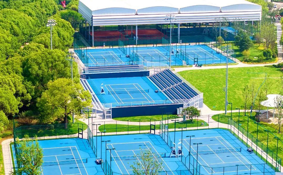 新建元國際網(wǎng)球中心占地面積8788平米,擁有11片國際賽事標準的網(wǎng)球場地,包括9片硬地場地和2片紅土場地,其中中央球場擁有1000個觀眾座椅,可承接各類國際賽事。中心配有全天候風雨篷,為球員在訓練或比賽時提供保障,更有為專業(yè)球員配備的體能中心、更衣室和淋浴間,附屬設施的專業(yè)度拉滿。
