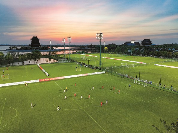 湖畔的足球公園正孕育著半島即將到來(lái)的又一輪熱力。4個(gè)標(biāo)準(zhǔn)足球場(chǎng)正在有序進(jìn)行著草坪的修剪和養(yǎng)護(hù)。“你看草坪上的孔是剛打的,一個(gè)星期左右,新的草就會(huì)長(zhǎng)好了。”球場(chǎng)保障部負(fù)責(zé)人何旭澤說(shuō),這些經(jīng)過(guò)FIFA認(rèn)證的球場(chǎng),是長(zhǎng)三角地區(qū)足球愛(ài)好者的“心頭好”,“周末的時(shí)候,經(jīng)常有上海、浙江的足球愛(ài)好者預(yù)約過(guò)來(lái)踢球。你看這片場(chǎng)地,即便是雨天,也不會(huì)出現(xiàn)積水的情況,比一些職業(yè)俱樂(lè)部的球場(chǎng)都好。”