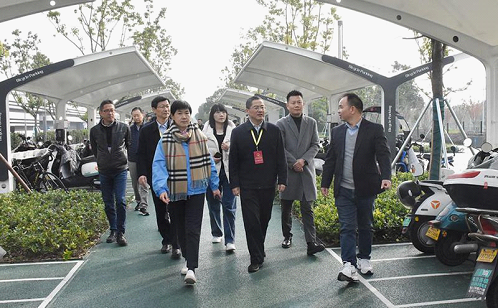 蘇州奧體中心西側(cè),兩排白色外觀的非機(jī)動(dòng)車停車棚與綠化有機(jī)結(jié)合,不僅完美融入奧體的整體環(huán)境氛圍,更為市民軌交換乘地面停車提供了極大便利。蘇州奧體中心西側(cè)景觀工程及廣場(chǎng)項(xiàng)目,是園區(qū)2024年民生實(shí)事項(xiàng)目之一,建成非機(jī)動(dòng)車車位1150個(gè),其中包含10個(gè)車棚共240個(gè)可充電車位,一經(jīng)投用,即受到市民的一致好評(píng),還帶動(dòng)了周邊商氣。園區(qū)人大工委一行邊走邊看,對(duì)蘇州奧體中心適當(dāng)減少綠化,增設(shè)配套設(shè)施,細(xì)化安全保障,提升便民服務(wù),提振周邊商氣的系列工作給予充分肯定。